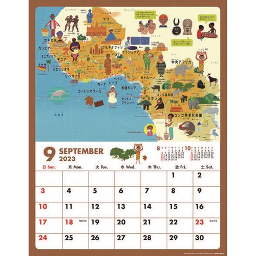 2023Calendar 世界地図カレンダー 壁掛けカレンダー2023年 てづかあけみ APJ 教養 イラスト インテリア 令和5年暦 予約 マシュマロポップ
