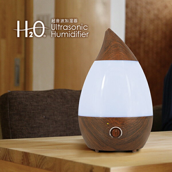 しずく型 超音波加湿器ホワイト木目調