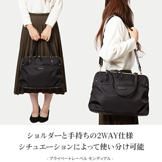 ブランドページ>> ■エース プライベートレーベル モンディアル 2WAYトートバッグ ace PRIVATE LABEL mondial【35582】 軽量のナイロン素材を使用した、Private Labelのレディースビジネスバッグ。