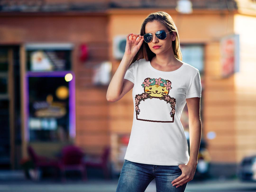 tシャツ レディース 半袖 白地 デザイン S M L XL Tシャツ ティーシャツ T shirt 009878 動物 フラワー 虎
