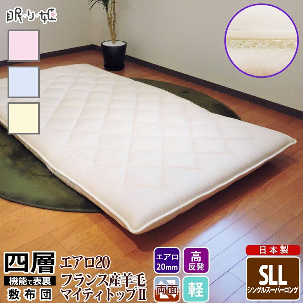 敷き布団 軽量 四層 シングルスーパーロング 羊毛混 エアロ ポリエステル 高反発 オールシーズン 体圧分散 腰痛軽減 蒸れにくい ロング 長身 長め ふとん 日本製 眠り姫 寝具 敷布団 送料無料 ようもう ぶとん マット 中材 クッション ベビー マットレス 座布団