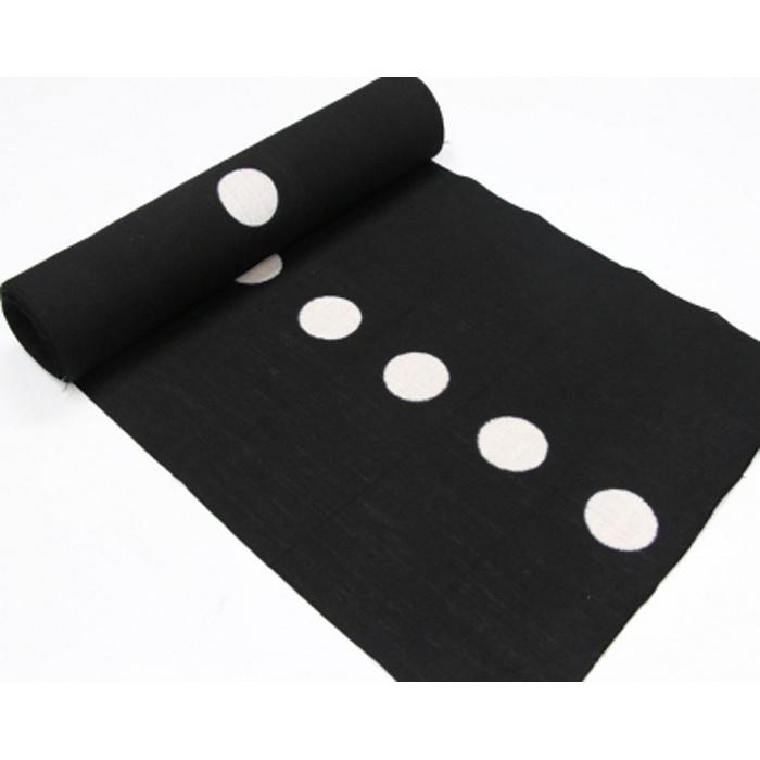 左の胸から伝統の染技法を使い、一直線に丸の紋をつなげました。