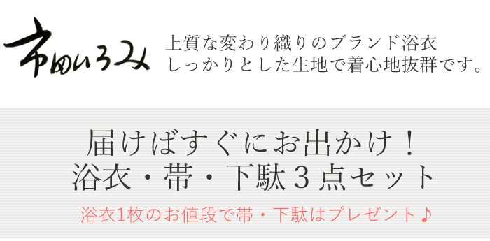 レディース浴衣・半幅帯・下駄 3点セット 大人の女性にぴったりの 落ち着いていて大人の可愛さも漂う ブランド浴衣3点セット コーディネートセットだから 帯合わせに悩まない!! 届けばすぐに着てお出掛け出来る 女子会、ランチ、デート、ショッピング、ガーデンパーティーなどなど 浴衣を着るシーンは無限大 セット内容 ・「市田ひろみ」ブランドお仕立て上り浴衣 ・浴衣帯(単衣タイプの半幅帯) ・下駄 【コーディネートについて】 ※半幅帯・下駄はこちらでのお任せコーディネートになります。