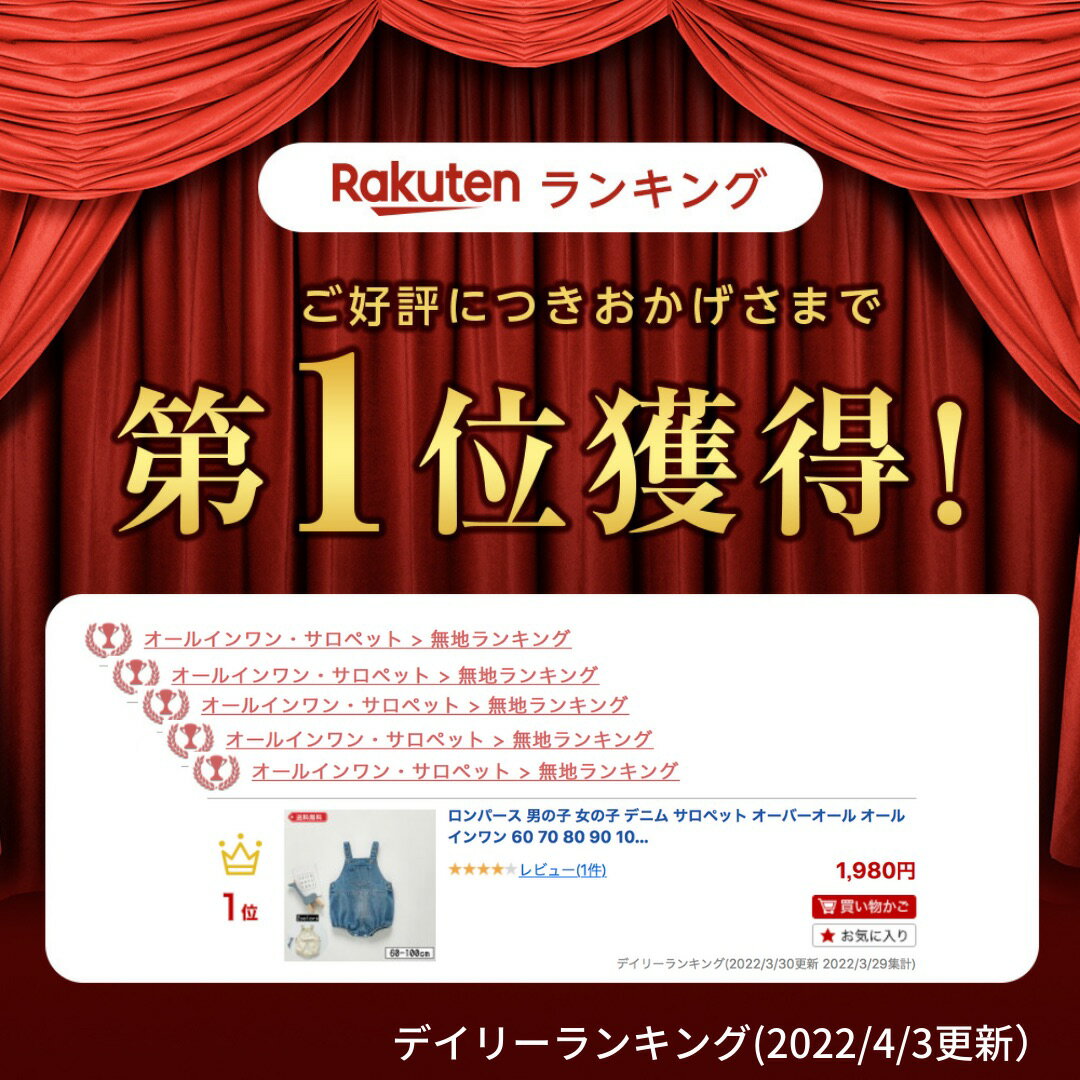 ロンパース 男の子 女の子 デニム サロペット オーバーオール 60 70 80 90 100 おしゃれ かわいい ベビー服 韓国 海外 子供服 子ども 赤ちゃん赤ちゃん・ベビーのサロペット(オーバーオール)です。